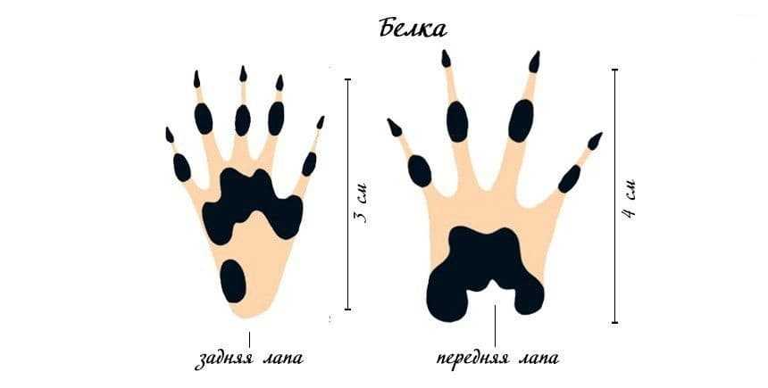 | Передние лапы | Размер следа взрослой особи | 2 см на полтора сантиметра |
