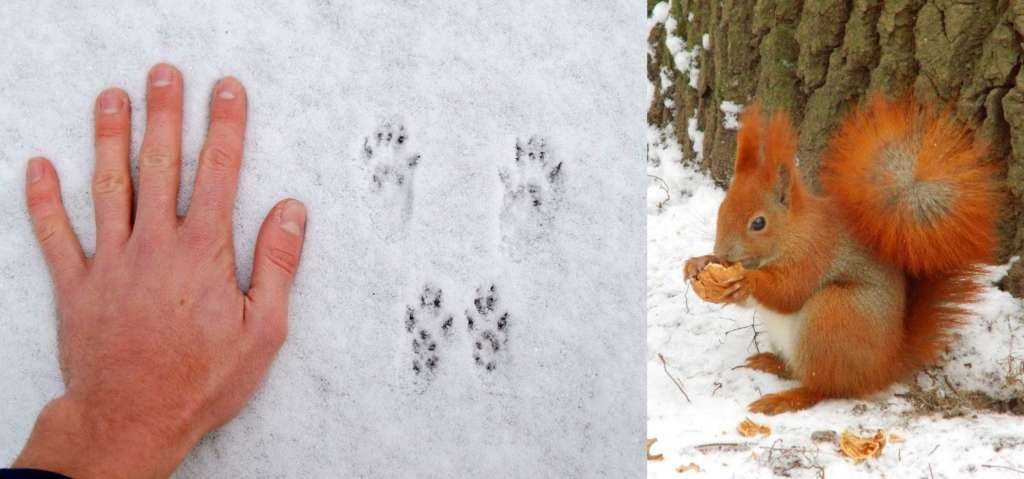 Белки активны как летом, так и зимой. В поисках пищи они прыгают с дерева на дерево и порой спускаются на землю, оставляя там следы.
