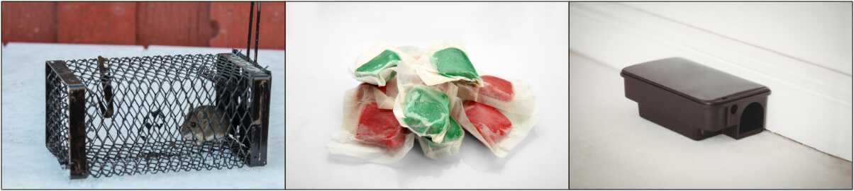 Как только вы обнаружите, что у вас есть мыши, лучше всего сразу принять меры, чтобы уменьшить вероятность повреждений и размножения. Наиболее распространенные методы борьбы с мышами — это ловушки и крысиный яд от грызунов. Ставьте мышеловки в тех местах, где вы обнаружили мышей. Для достижения наилучших результатов не используйте в качестве приманки сыр, лучше подойдет корка хлеба с подсолнечным маслом. Ежедневно проверяйте ловушки и обязательно надевайте перчатки при этом. Мертвые мыши должны быть помещены в полиэтиленовый пакет и немедленно выкинуты.