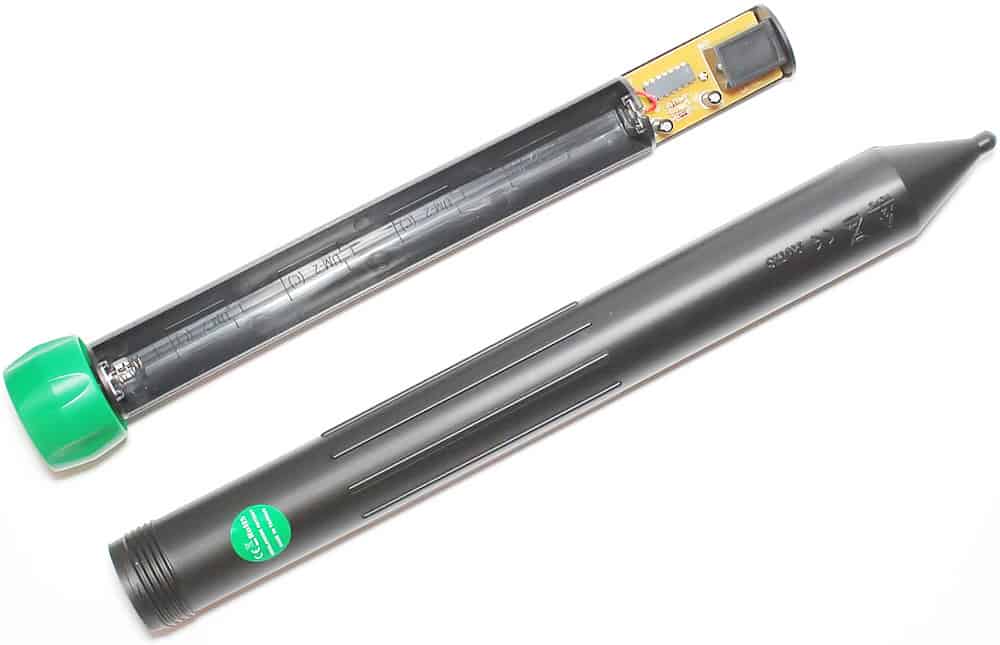 Батарейки и печатная плата уложены на второе дно корпуса, осталось закрыть крышку и отпугиватель кротов готов к использованию по назначению. Достаточно его зарыть в грунт на глубину, исключающую попадание потоков воды по грунту во время дождей и полива сбоку крышки, так как она все же не совсем герметична. Достаточно закопать до уровня половины банки. Индикатор включенного состояния отпугивателя в схеме не предусмотрен для исключения необоснованного расходования энергии, так как когда отпугиватель издает звук, то он слышен даже на значительном от него удалении.