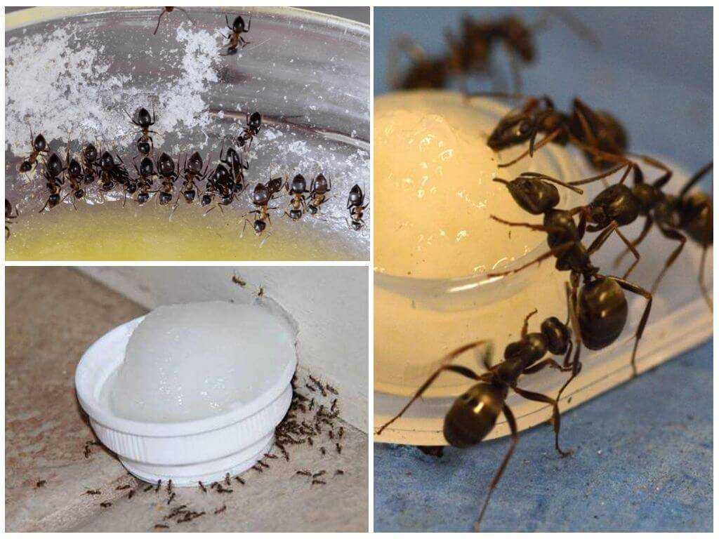 ядовитые приманки. Обычно приманки делаются с использованием буры (1ч. ложка) и особенно любимых муравьями продуктов (мясной фарш, желток яйца, мёд). Кусочки этой смеси раскладывают по всей поверхности участка. Наевшись, муравьи через некоторое время погибают