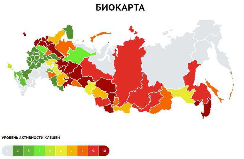 Более подробную информацию об активности клещей в разных регионах РФ смотрите на сайте biostop.org