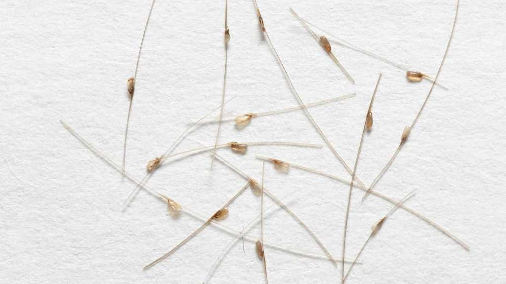 Напоминают кунжутное семя. Крепятся к волосам. |