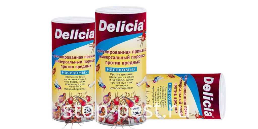 Это немецкий порошковый инсектицидный препарат. Он выпускается в разных объемах, что позволяет купить именно то количество, которое необходимо. Delicia борется с насекомыми, как в помещении, так и на открытых участках.