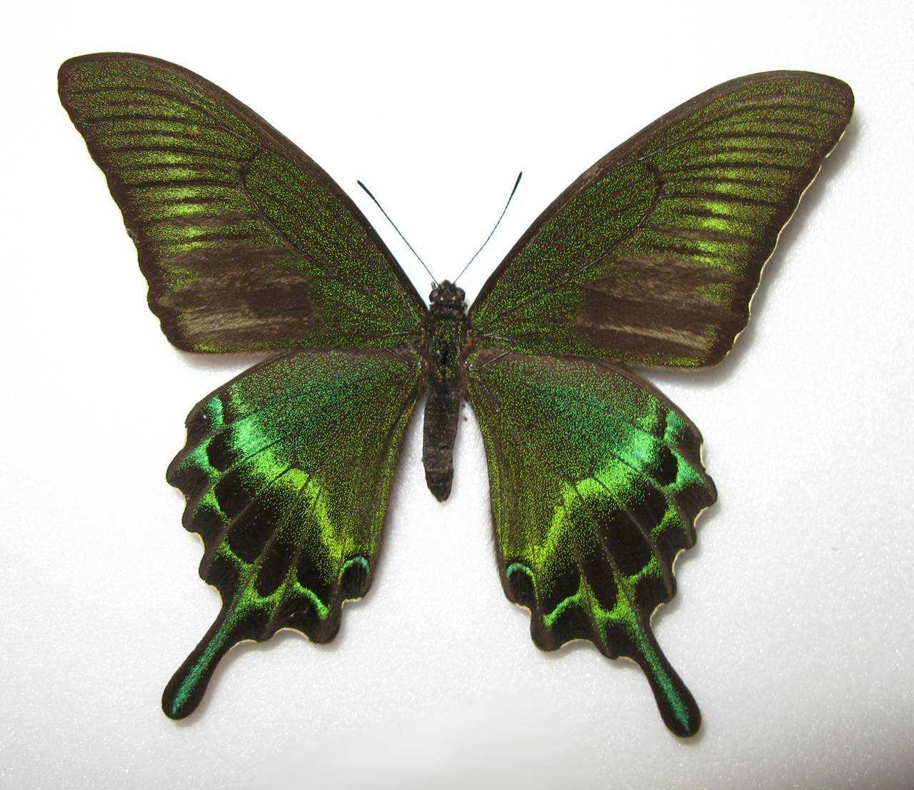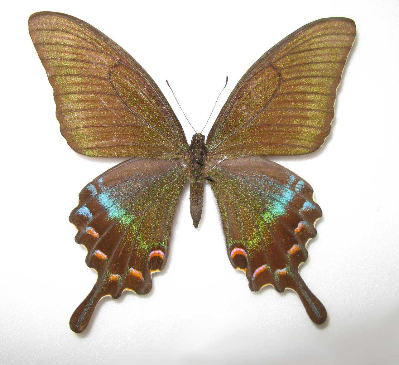 Парусник Улисс (Papilio ulysses). Обратная сторона крыльев.