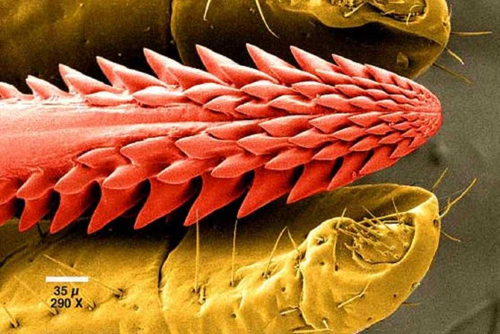 Хоботок клеща имеет длинный ряд симметрично расположенных мелких шипов. Благодаря им паразит прочно прикрепляется к хозяину. Некоторые виды клещей с более короткими жалами также производят клейкую жидкость, помогающую надежно закрепиться на выбранном месте.