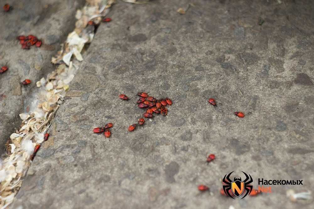 Собираются они огромными колониями. Размножение происходит очень стремительно, так что если хоть одно насекомое появилось в саду или на огороде, нужно быть готовым к борьбе. Огромные колонии красноклопов расплодятся уже в ближайшем будущем. Поодиночке клопы-солдатики почти безвредны, но при массовой атаке спасти молодые побеги очень тяжело.
