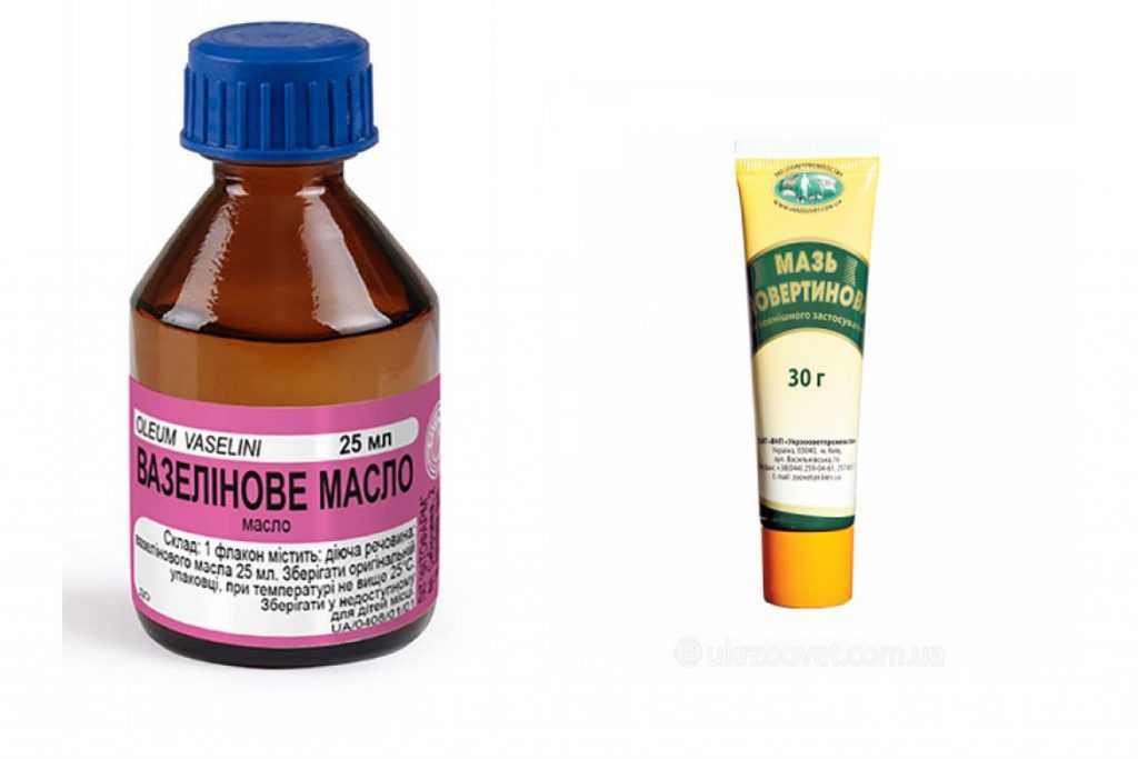 - Вазелиновое масло. Безопасное средство, не вызывающее ухудшения здоровья птицы при попадании в ротовую полость и на веки, поэтому рекомендуется использовать его при поражении глаз. Но эффективность ниже, чем у аверсектиновой мази — оно только закупоривает ходы клеща, поэтому обработки проводят раз в 2–3 дня, а в запущенных случаях — каждый день.