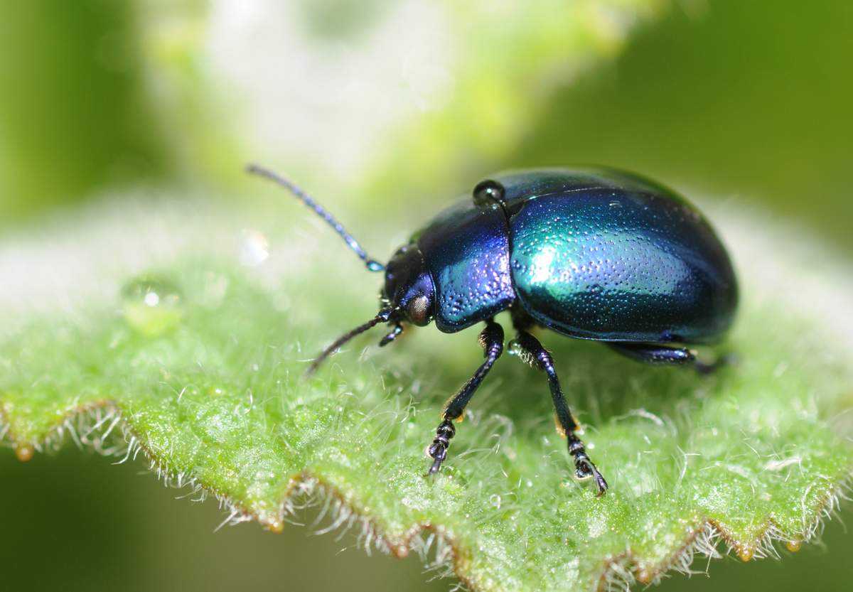 Ольховый листоед (Agelasticaaini) относится к подсемейству козявок из семейства листоедов. Жук маленького размера – 6-7 мм. Окраска темно-синяя, с фиолетовым оттенком и металлическим блеском. Голова черная, усики нитевидные, достигают половины тела. Глаза крупные, овальной формы. Ширина грудного щитка в 2 раза превышает его длину. Переднеспинка с четкими углами, боковые части закруглены. Нижняя сторона тела черная.