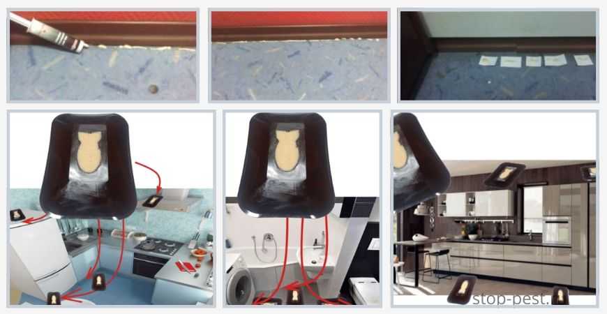На обратной стороне ядовитых ловушек есть липучка, что дает возможность крепить их даже на вертикальных поверхностях. Преимущество таких устройств в том, что их не нужно подключать к сети. Это дает возможность размещать их даже в местах повышенной влажности (возле мойки, под раковиной, в ванной).