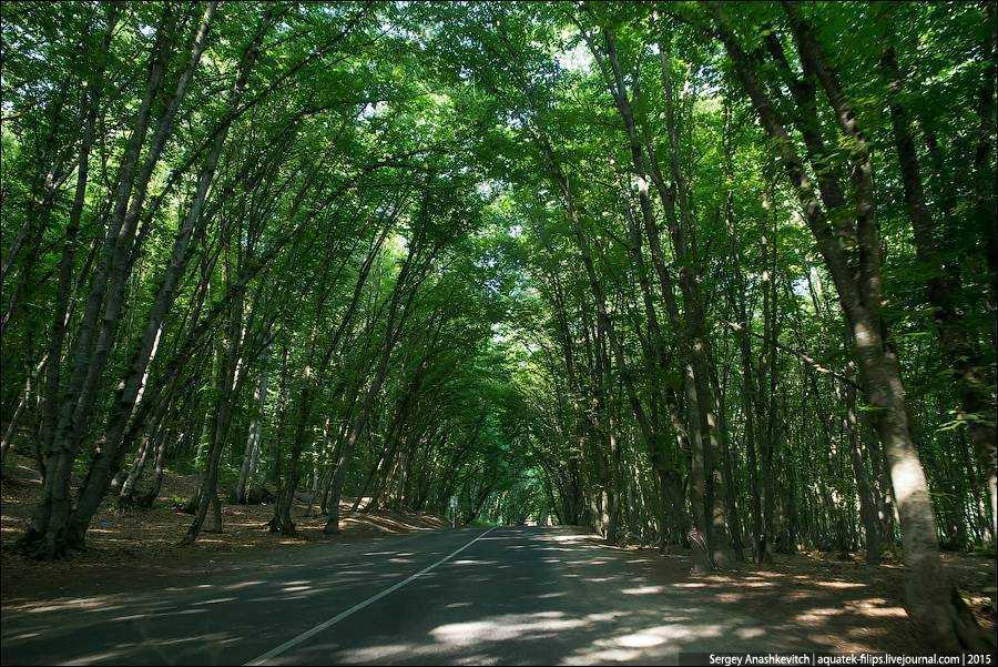 2. Едем-едем через деревни-поселки, как вдруг оказываемся в красивом зеленом тоннеле, буквально нависающем над дорогой. Как не остановиться, чтобы сделать фотографию? Открыв дверь машины, я опешил.В салон Subaru Forester ворвался пронзительный треск, который мы никак не ожидали услышать.Это было “пение” миллионов цикад, но “пение” совсем не такое, к которому я привык у нас в Крыму. Там это нисколько не напрягало слух, здесь же хотелось засунуть в уши беруши…
