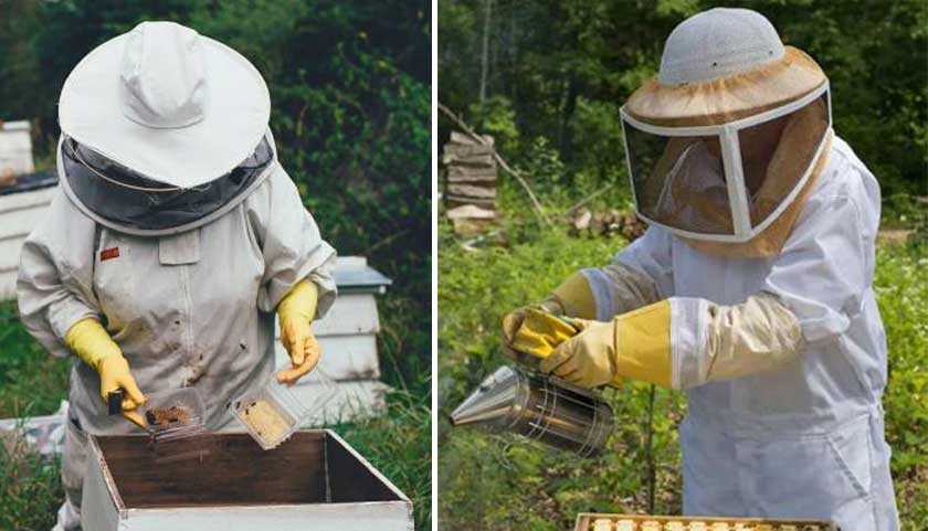 Руки можно защитить длинными резиновыми перчатками, а одежда должна быть плотной, максимально закрытой. Лицо можно защитить специальной пчеловодной шапкой с сеткой, придумать свой самодельный вариант.