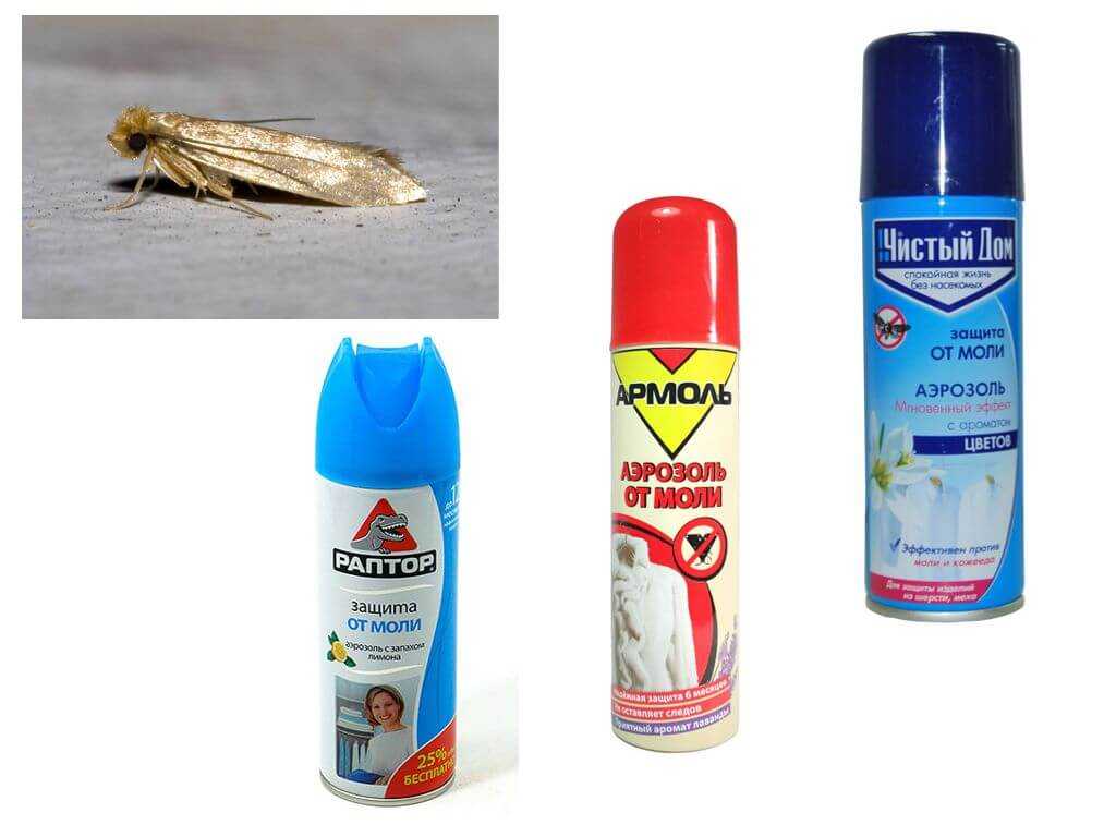 - Аэрозоли. Самыми распространенными являются такие средства: «Раптор», «Армоль», «Антимоль», «Дифокс», «Комбат». Аэрозольным средством вы сожжете обработать одежду, внутренние поверхности шкафа. Эффект от препаратов заметен сразу. Действие сохраняется от 6 до 12 месяцев, либо до первой стирки вещей. Существуют аэрозоли, в основе которых лежат растительные компоненты. Именно поэтому они безопасны для животных и человека. С помощью распылителя можно избавиться не только от бабочек, но и от личинок.