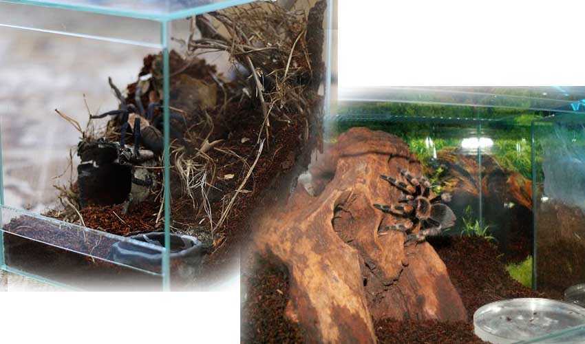 Наиболее оптимальным для содержания паука птицееда в домашних условиях является стеклянный террариум. Террариум для паука птицееда может быть квадратным и не большего размера. По размеру, террариум должен быть всего в два раза больше длины тела самого паука. Например, если вместе с лапками, Ваш питомец будет размером 20 сантиметров, то Вам подойдет террариум размерами 40x40x40.