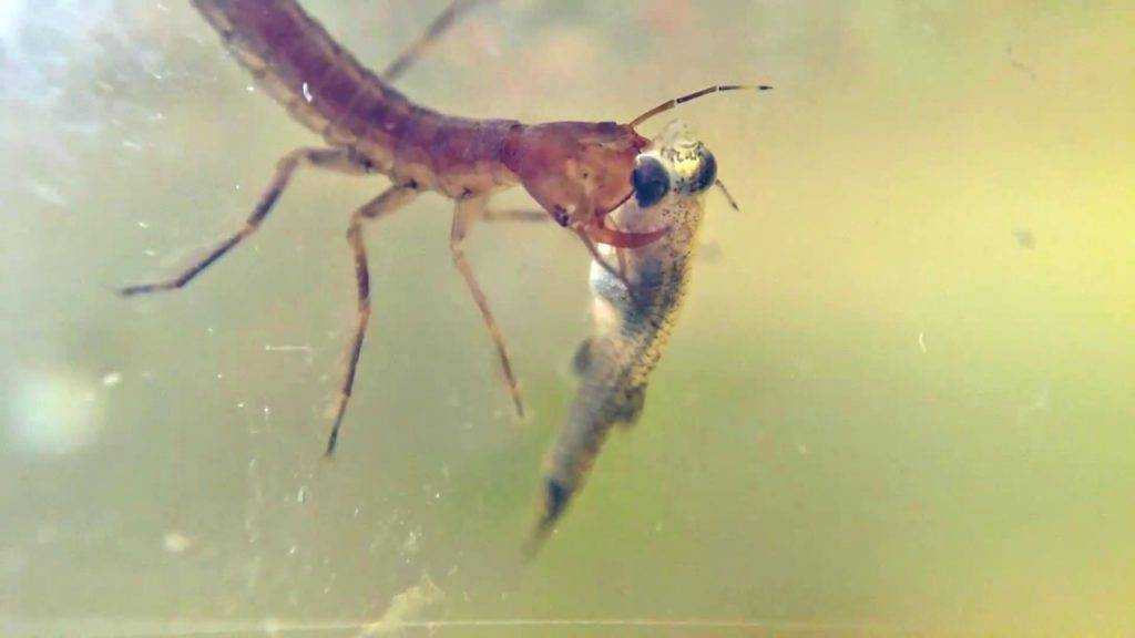 Таким образом личинки поедают не только других насекомых, но также способны поедать головастиков и даже взрослых рыб. Зрелые личинки выползают из воды, чтобы окуклиться в пределах береговой линии.