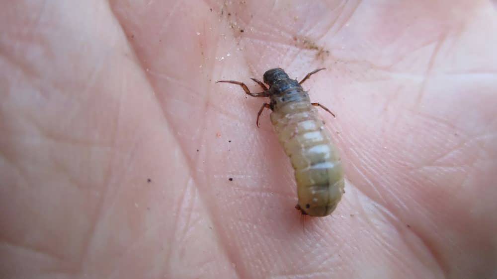 - У личинки головка более темная. Если на нее посмотреть через микроскоп, то можно увидеть довольно мощные челюсти.