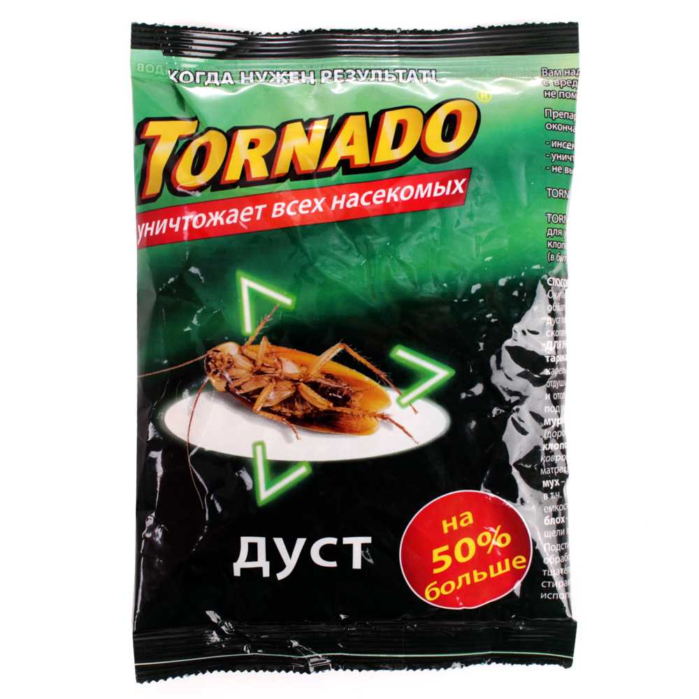 Это универсальное средство от многих видов квартирных насекомых. Продается в виде мелкодисперсного порошка. Стоимость одного пакетика массой 150 г всего 20-30 рублей. Но дуст от клопов Торнадо не так эффективен, как аэрозоли, поэтому его рекомендуют использовать совместно с другими препаратами. Т.е. обрабатывать поверхности, например, дустом Антиклоп, а в щели плинтусов, в вытяжки и другие труднодоступные места насыпать порошок Торнадо.