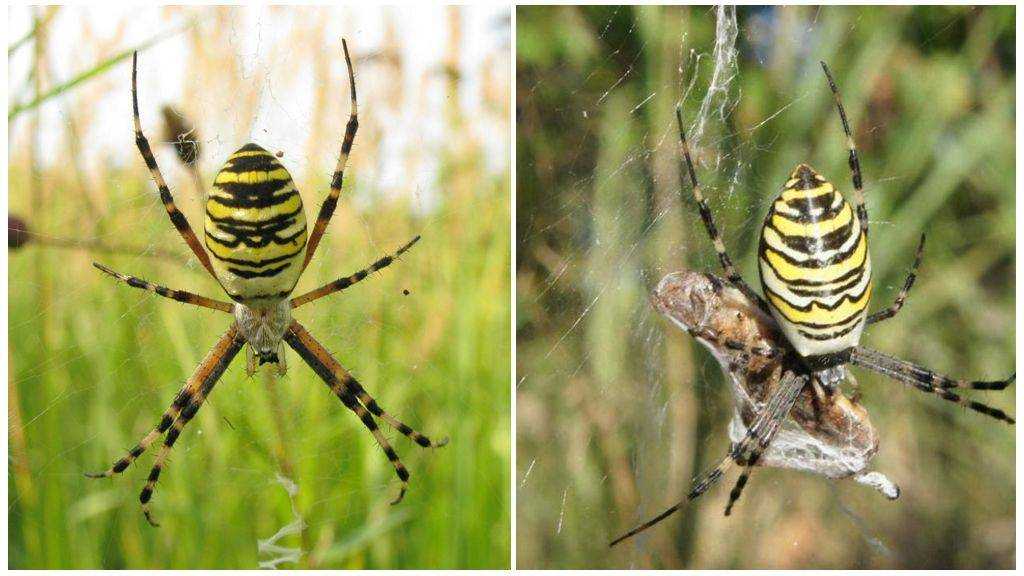 Она же паук-оса. Относится к семейству пауков кругопрядов. Свое имя «оса» получила за характерную окраску брюшка. По числу видов уступает только паукам-скакунам и линифиидам. Ареал аргиопы ограничен 52°с.ш.