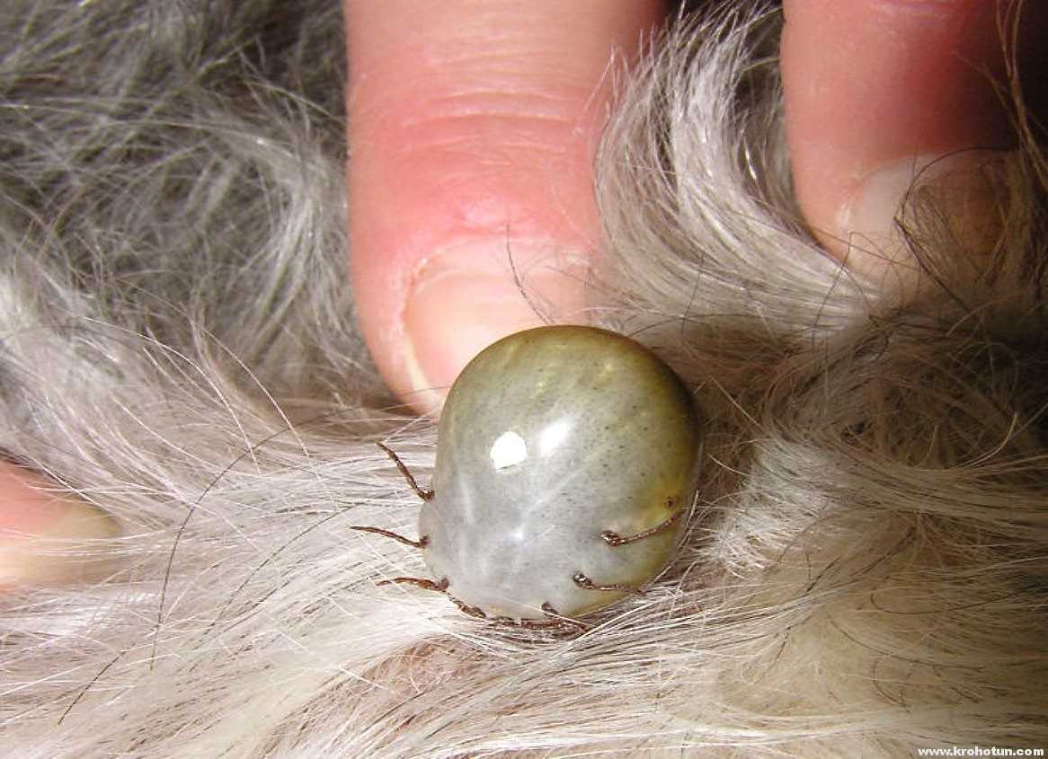 После каждой прогулки осматривайте животных, клещ похож на маленького черного или серого паучка. Насосавшийся клещ становится коричневым или серым. Он похож на чечевичное зерно.