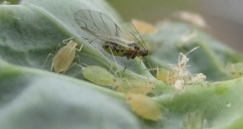 Установить заражение культуры тлей легко по ее внешнему виду: