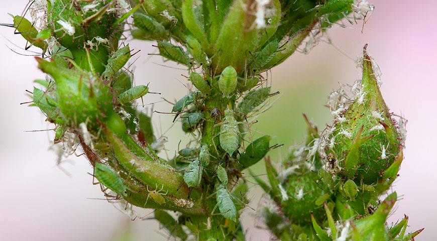 Справка! Черная тля может заражать цветы патогенными бактериями и вирусами. Приводить к быстрой гибели.