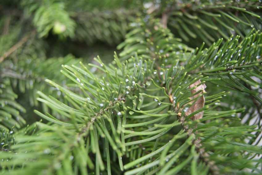 Наличие белых пушистых комочков на нижней стороне ветвей у основания игл. Они напоминают крошечные ватные шарики. Ухудшение общего состояния дерева и, в первую очередь, молодых приростов.