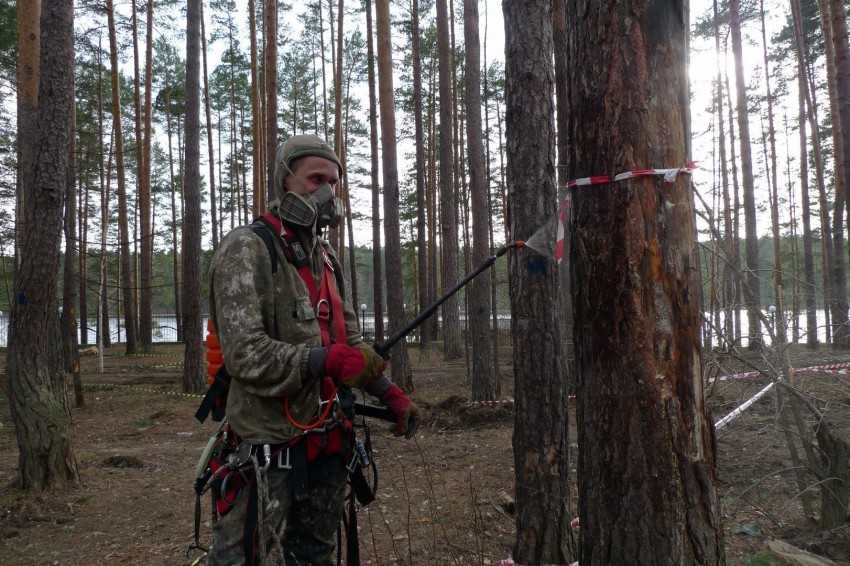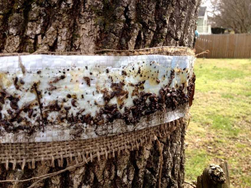 Ствол сосны можно обмотать ловчим поясом. Это небольшой кусок материала, смазанный смолой, дегтем или пропитанный инсектицидом. Ползущее по стволу насекомое прилипнет к ловушке или погибнет от яда.
