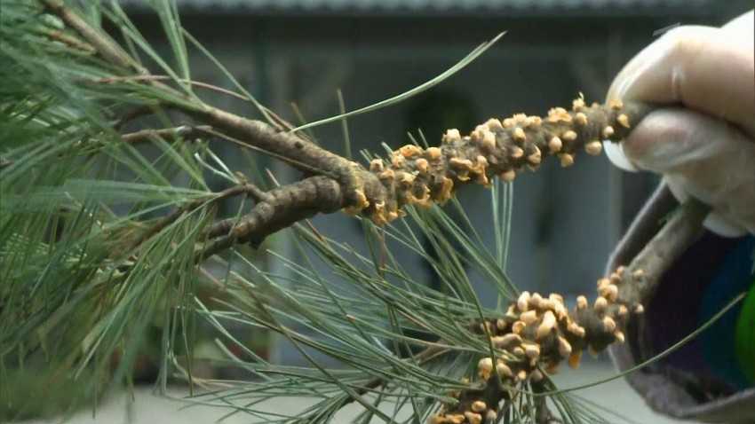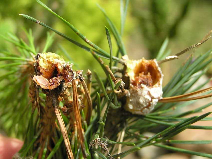 Даже маленькие по размеру вредители сосны могут нанести урон самому большому дереву. При первом образовании гроздей с коричневыми капсулами бейте тревогу! В скором времени сосновое дерево оккупируют гусеницы-пилильщики. В капсулах дозревают их личинки.