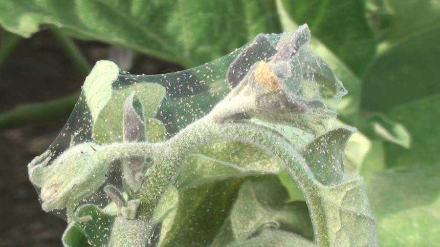 Гораздо обнаружить его присутствие по симптомам листвы. Если на кустике их мало, то листочки просто покрываются белыми пятнами, но в случае наличия большого свода, то растение окутывает почти незаметная паутина, отсюда и вытекает название клеща.